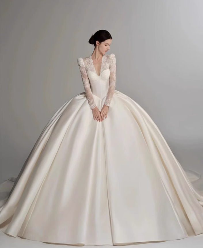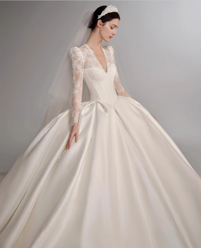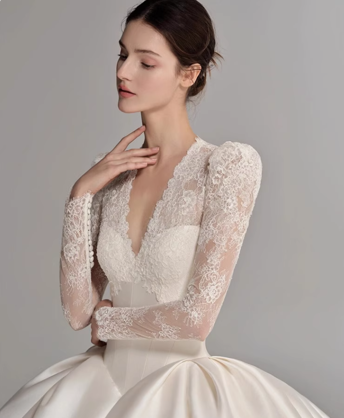 クラシカルな美しさと気品を兼ね備えたロングスリーブのウェディングドレス。